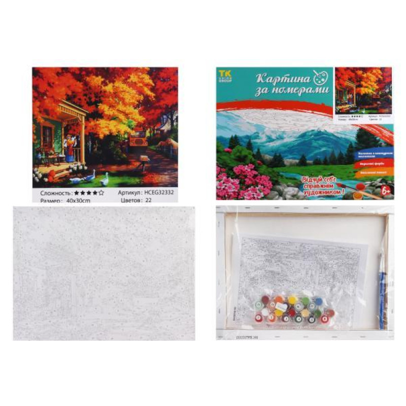 Набор для росписи на холсте Картина по номерам МИКС. , 30х40см, в коробке, TK Group (32332-mt). Комплектация: Холст на подрамнике, Акриловые краски, Кисточки разной толщины, Контрольный лист, Крепление. Количество цветов: 20-36. Уровень сложности:. Упаковка: в коробке. Страна-производитель товара: К..