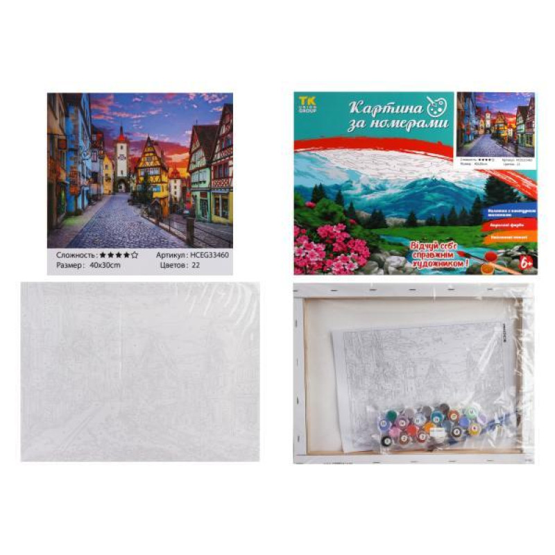 Набор для росписи на холсте Картина по номерам МИКС. , 30х40см, в коробке, TK Group (33403-mt). Комплектация: Холст на подрамнике, Акриловые краски, Кисточки разной толщины, Контрольный лист, Крепление. Количество цветов: 20-36. Уровень сложности:. Упаковка: в коробке. Страна-производитель товара: К..