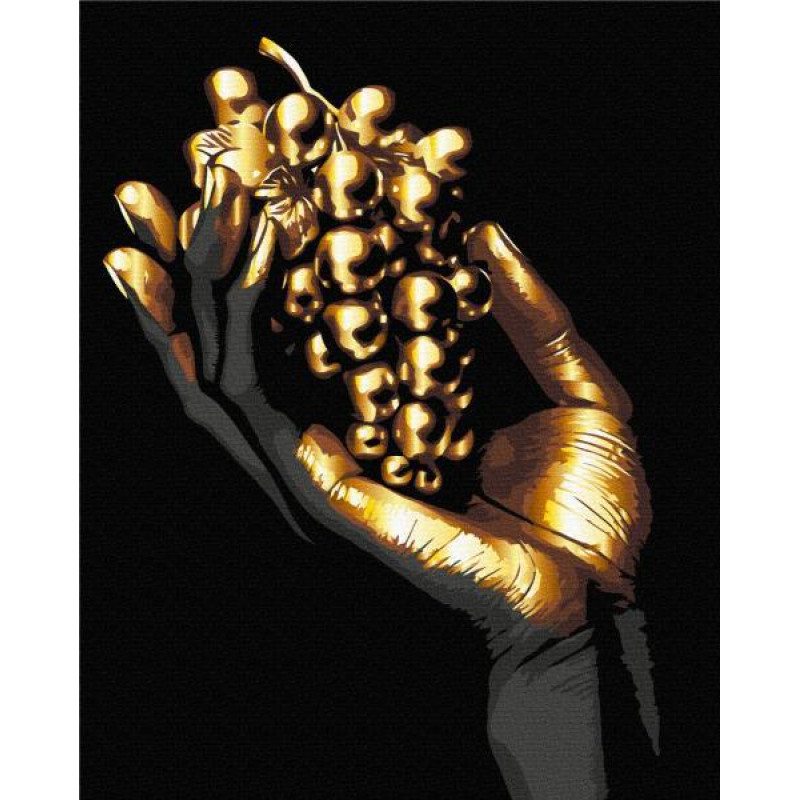 Картина по номерам Натюрморты. Золотая гроздь, черный фон, с красками металлик, флуоресцентные, 40х50см, в термопакете, Brushme (BSB0003)