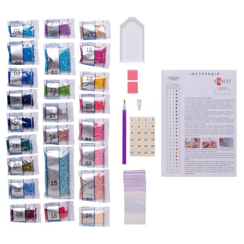 - круглые стразы, расфасованы в пронумерованные пакетики;