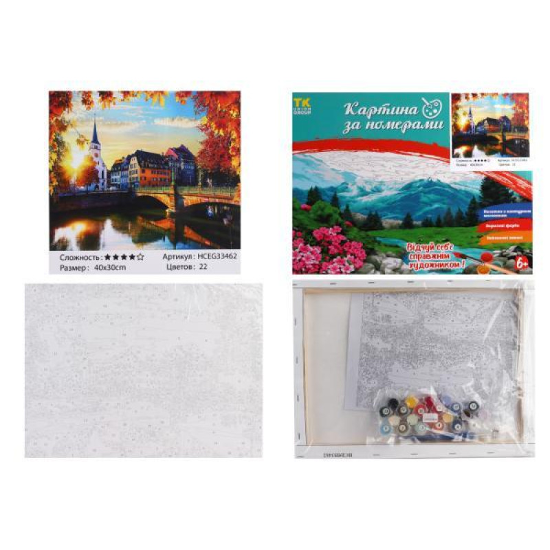 Набор для росписи на холсте Картина по номерам Пейзаж. Осень в различных красках, 30х40см, в коробке, TK Group (33462-mt). Комплектация: Холст на подрамнике, Акриловые краски, Кисточки разной толщины, Контрольный лист, Крепление. Количество цветов: 20-36. Уровень сложности:. Упаковка: в коробке. Страна-производитель товара: Китай
