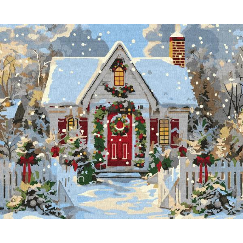 Набор для росписи на холсте Картина по номерам Пейзаж. Рождественский домик, 40х50см, в термопакете, Идейка (KHO6358). Комплектация: Холст на подрамнике, Акриловые краски, Кисточки разной толщины, Контрольный лист, Крепление. Количество цветов:. Уровень сложности:. Упаковка: в термопакете. Страна-производитель товара: Украина