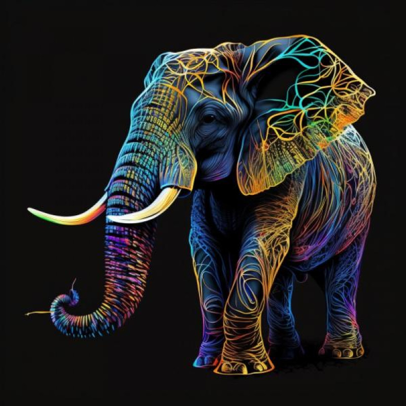 Картина по номерам Животные. Красочный слоненок, черный фон, 40х40см, в термопакете, Strateg (AV4040-17-mt)