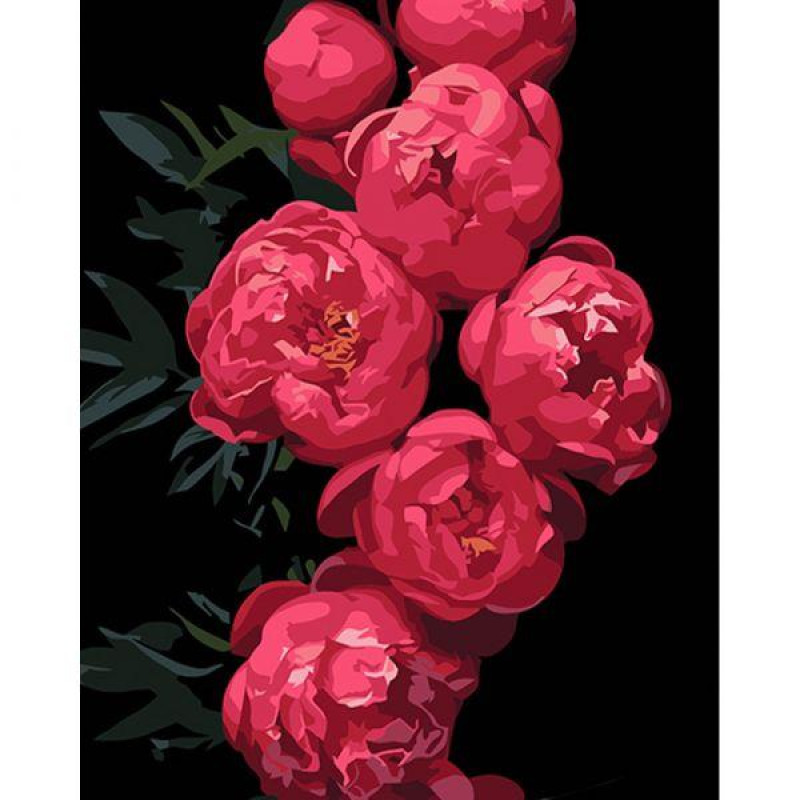 Набор для росписи на холсте Картина по номерам Цветы. Розовые пионы, черный фон, 40х50 см, термопакет, Strateg (AH1035-mt). Комплектация: Холст на подрамнике, Акриловые краски, Кисточки разной толщины, Контрольный лист, Крепление. Количество цветов: 13. Уровень сложности: 3. Упаковка: термопакет. Страна-производитель товара: Украина