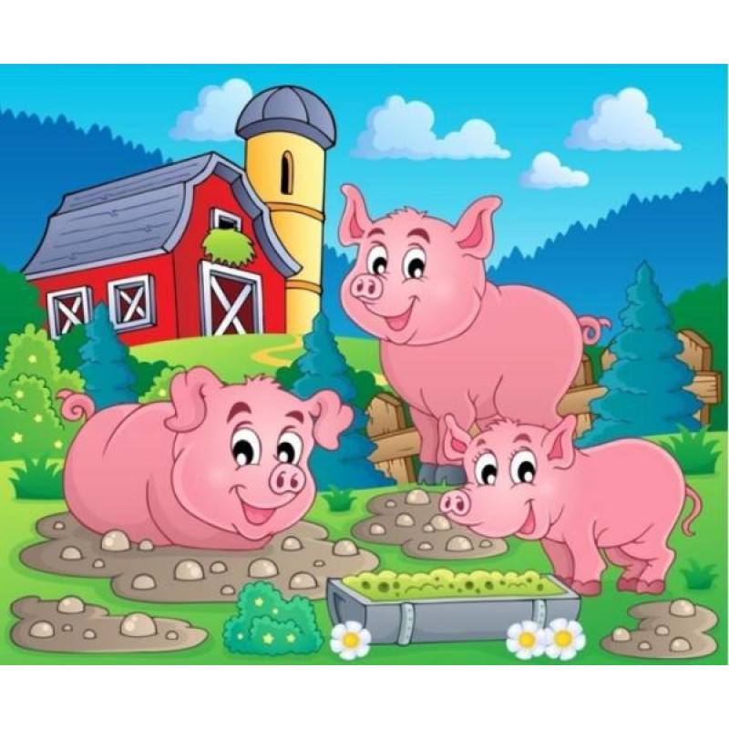 Картина по номерам Животные. Свинки в грязи, 30х30 см, термопакет, Strateg (ES163-mt)