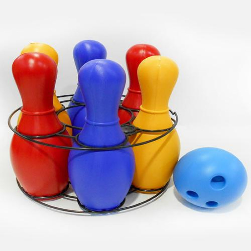 Кегли "Радуга-6", кегли- 6шт, шар, в сетке 28*23см, Украина, ТМ Колорпласт..