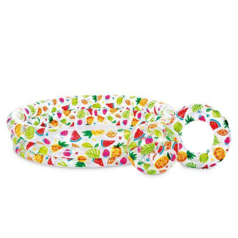 Бассейн надувной "Ананасовый всплеск", 3 секции, круг, рем. комплект, круг 51см+мяч 51см, INTEX, пак. 32*38см , ст: 59469..