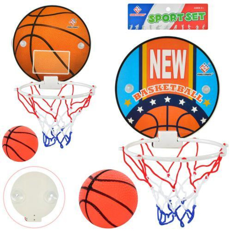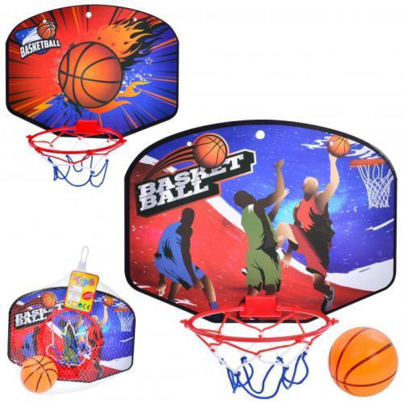 Баскетбольное кольцо щит пластик 28*21см, кольцо пластик 14см, сетка, мяч, 2 вида, в сетке 28*26*7см , арт: MR1180-1..