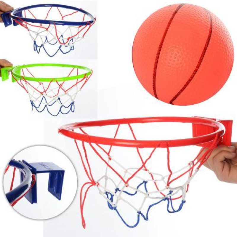 Баскетбольное кольцо диам. 27см, пластик, сетка, мяч, 3 цвета, в сетке, 27*32*5см , арт: MR0124..
