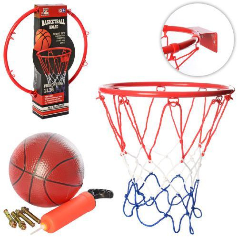 Баскетбольное кольцо кольцо 39см (метал.), сетка, мяч, насос, крепления, в кор. 39*45*9см..