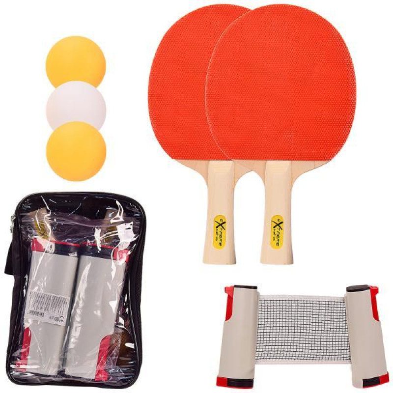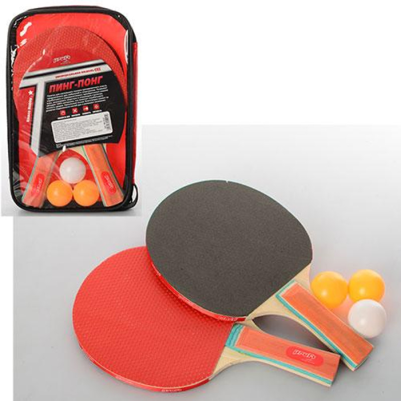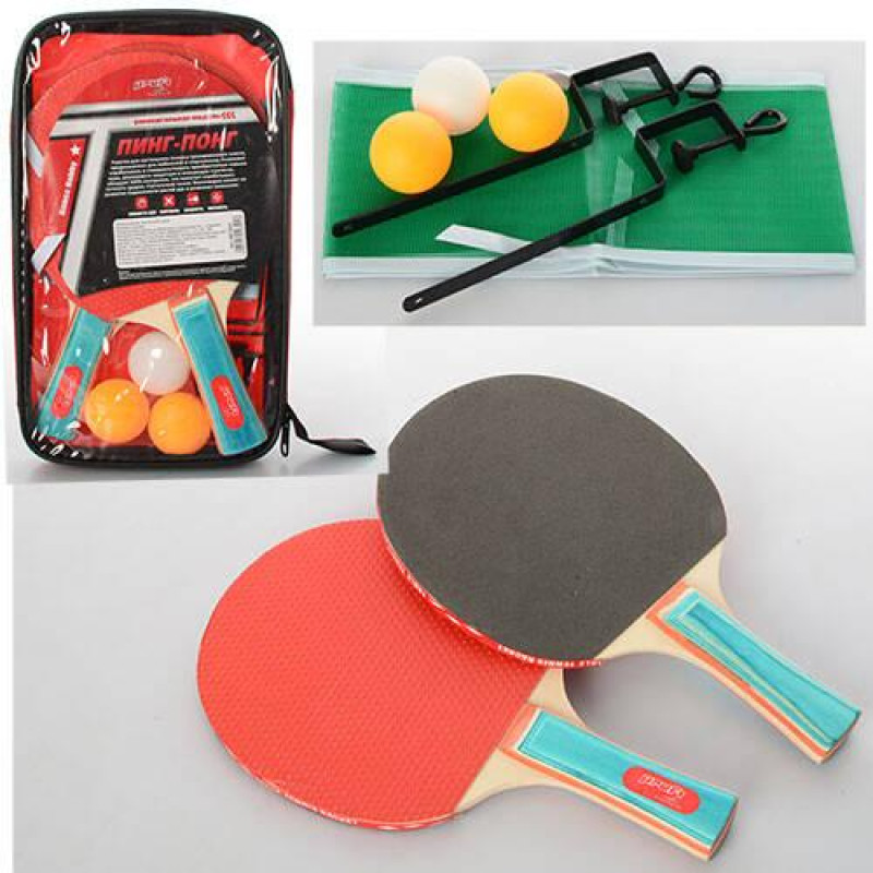Теннис настольный 2 ракетки 15*25см, 3 мячика ABS, с сеткой, чехол 28*18*10см..