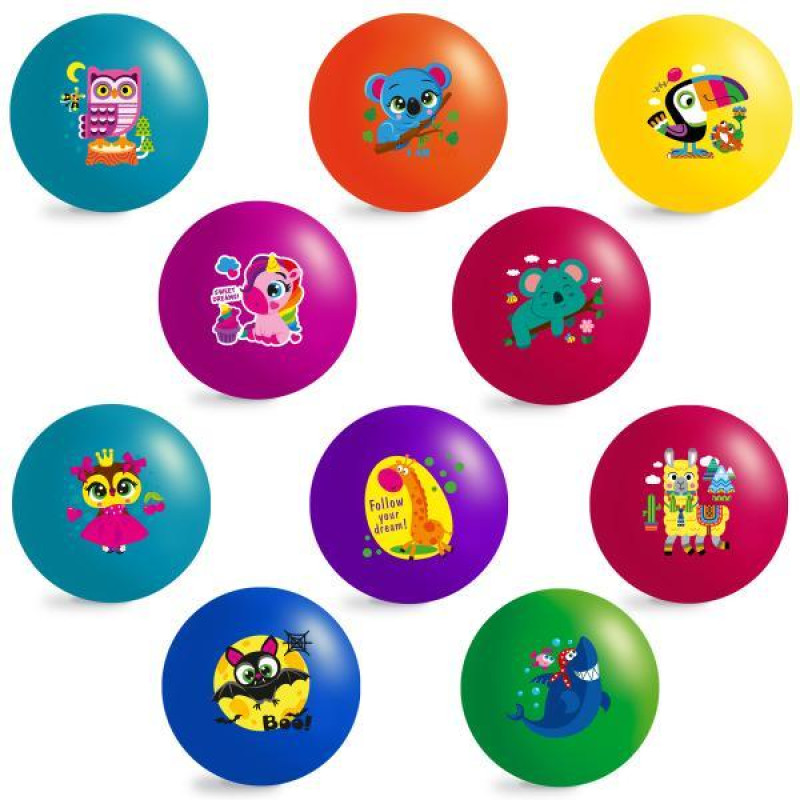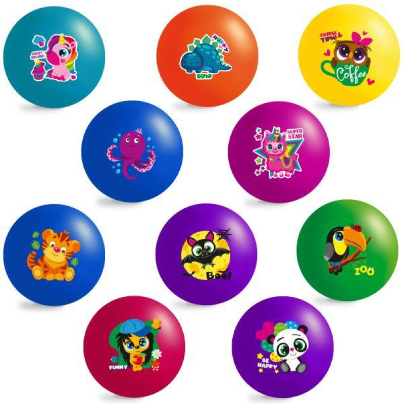 Мяч детский 9 дюймов, рисунок, ЦЕНА ЗА УП. 10ШТ, 60-65г, 4 вида..