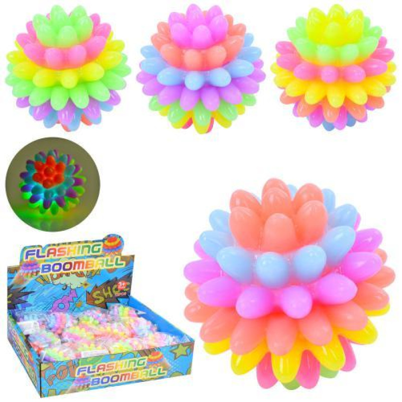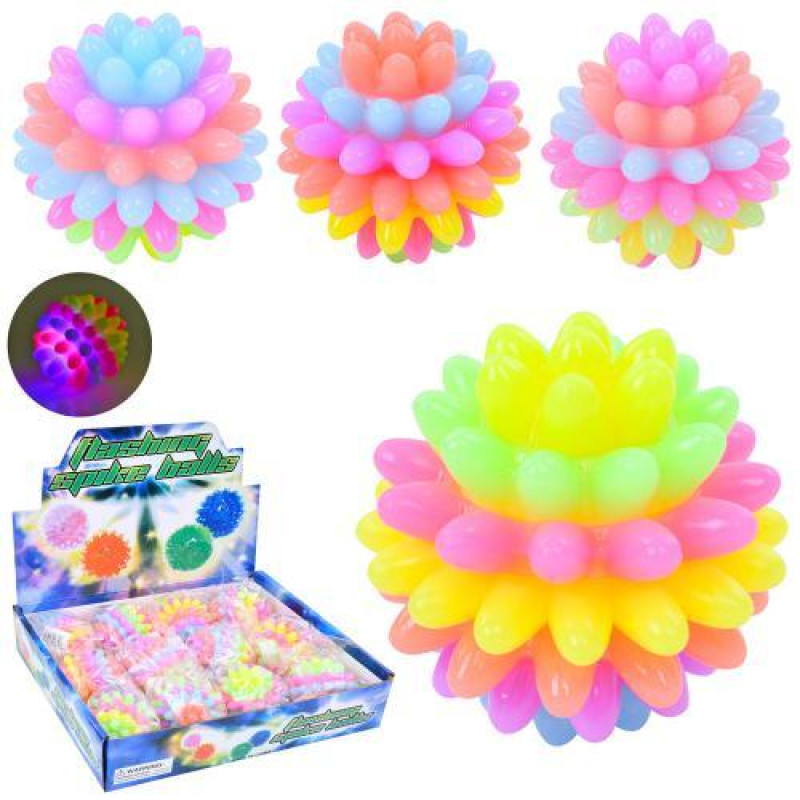 Мяч массажный 5,5см, свет, бат(табл), ЦЕНА ЗА 1ШТ, В УП. 12ШТ, (микс цветов) в дисплее, 23*18*6см..