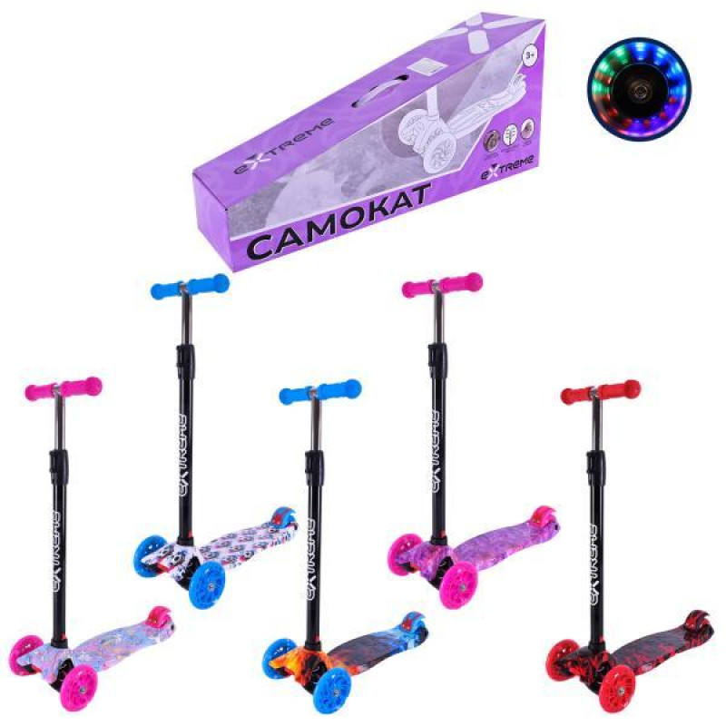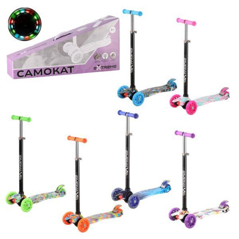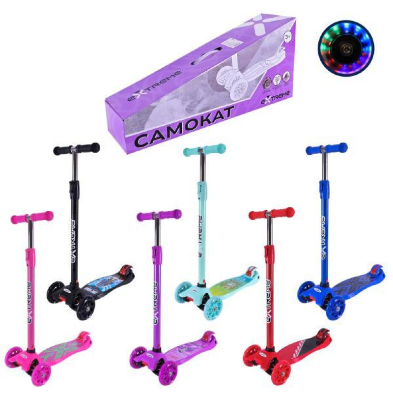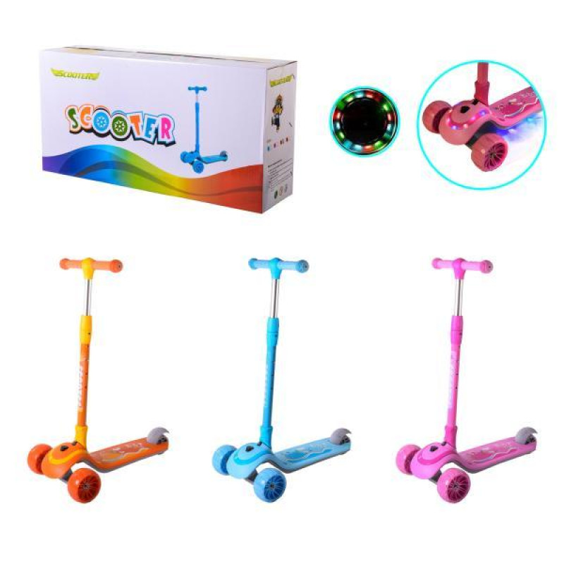 Самокат детский 3-х колес. MIX 3 цвета, колеса PU 110*30мм со светом, в кор.