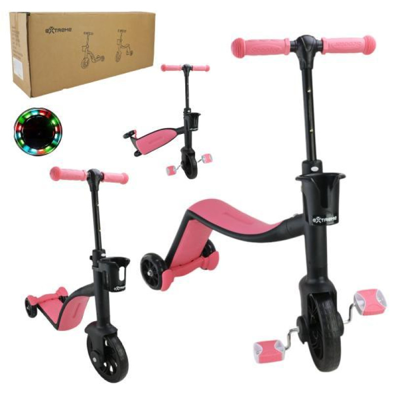Самокат детский 3-х колес 2В1- велобег и самокат, колеса EVA, розовый, в кор. 63*18*26см