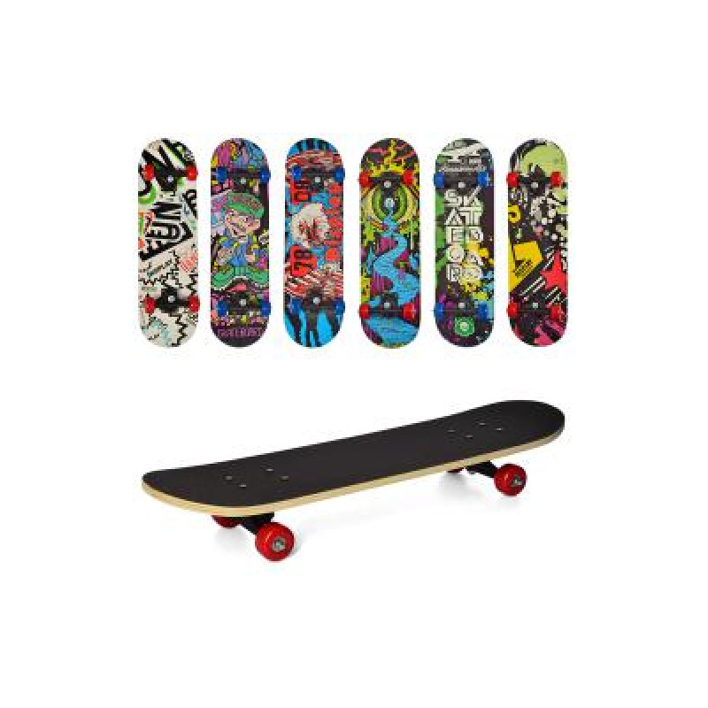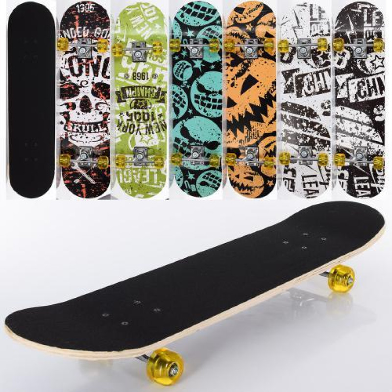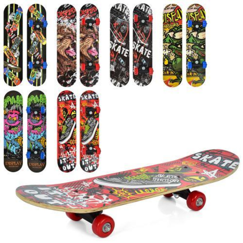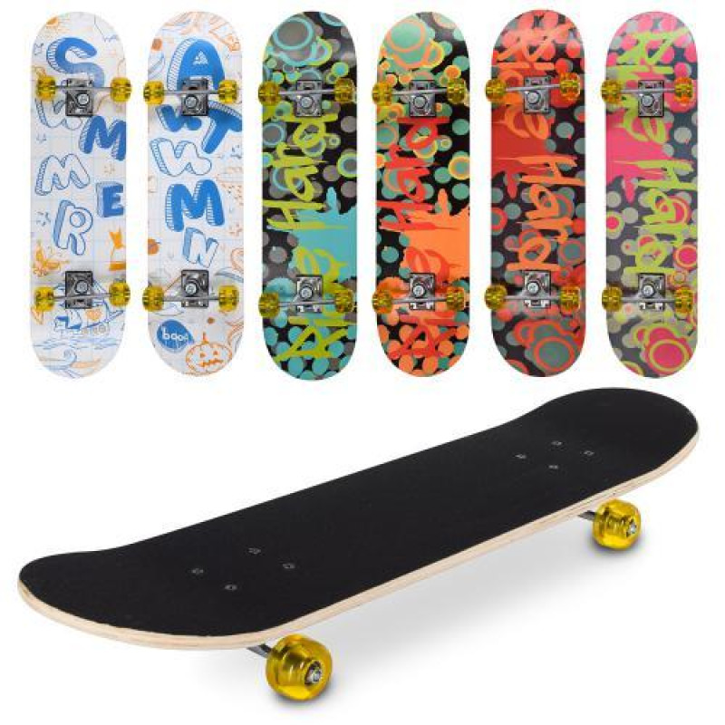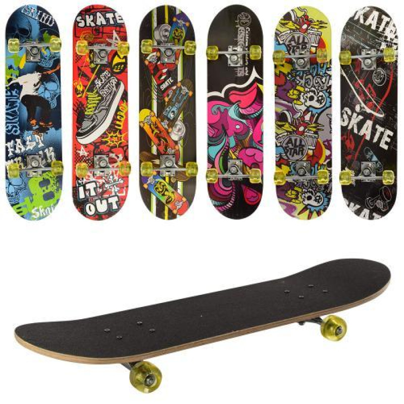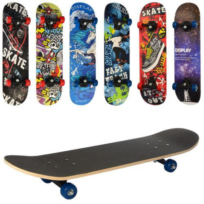 Скейт 79,5*19,5см (наждак), алюм.подвеска, колеса ПУ, 7слоев, 608Z, разобр, 6 видов, пак...