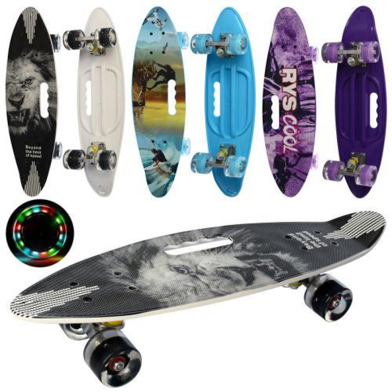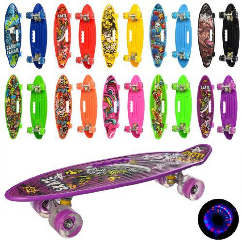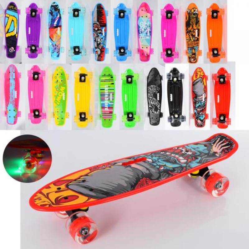 Скейт пенни, 56*14.5см, колеса ПУ, свет, антискольз, 8 видов, упаковка: пакет 56*14,5см ..