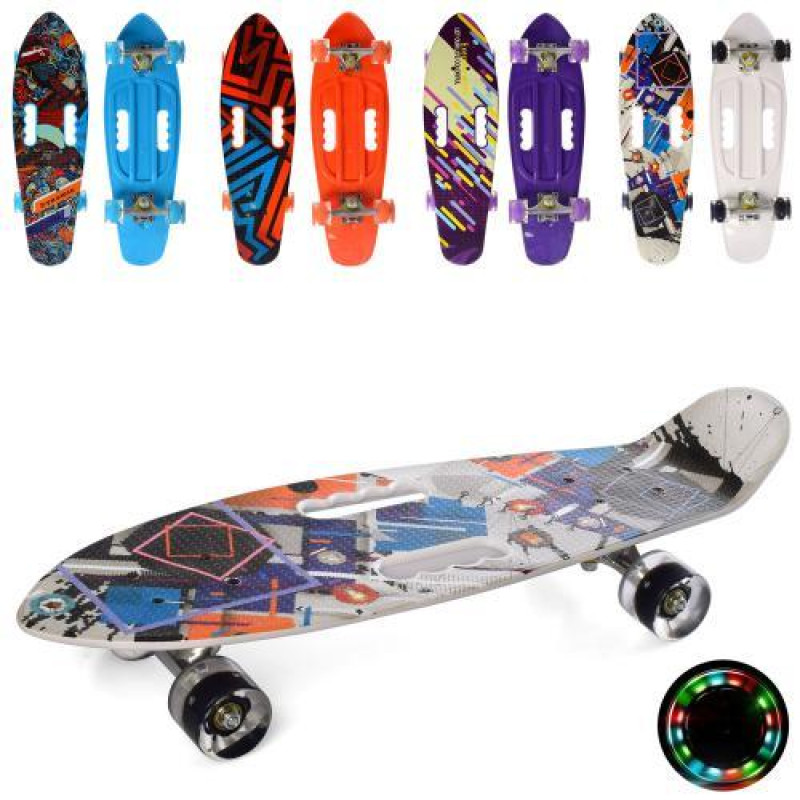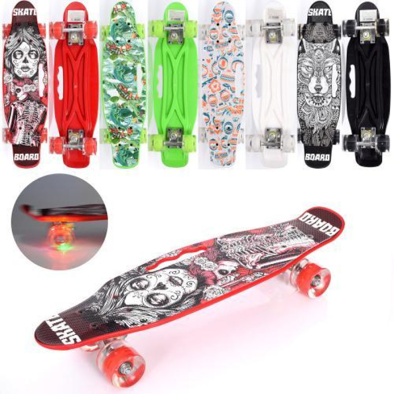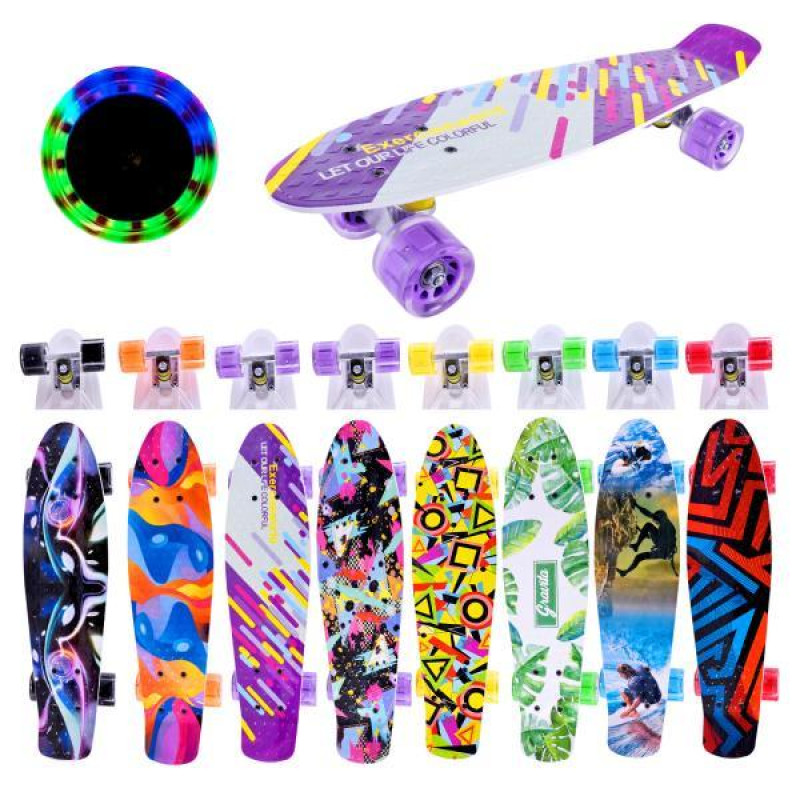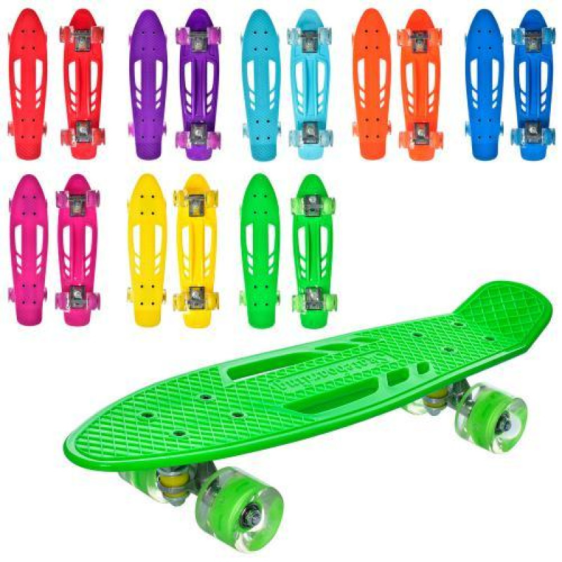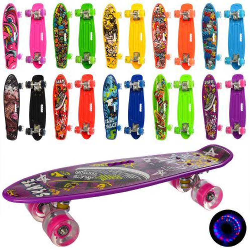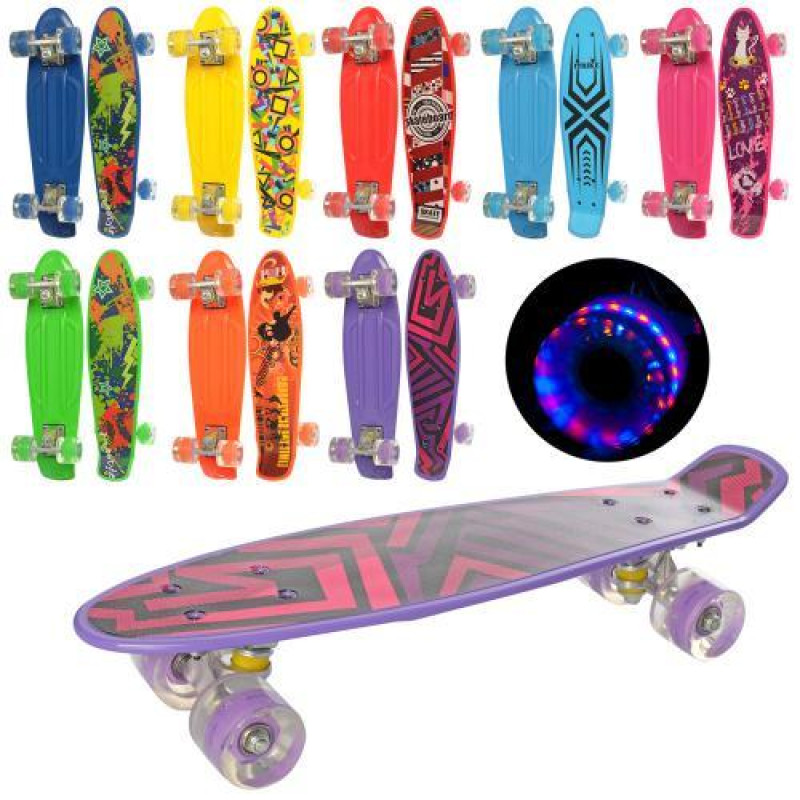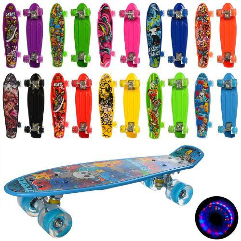 Скейт пенни, 55,5*14,5см, алюм.подвеска, колеса ПУ, свет, 8 цветов, пак...