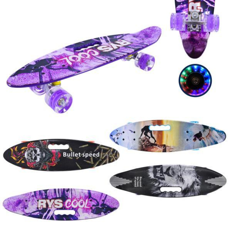 Скейт Пенниборд фиолетовый 56*15*12см, собранный, LED-ПУколеса, алюм. подвес, подшип. АВСЕ7), ТМ MAXIMUS, Украина..