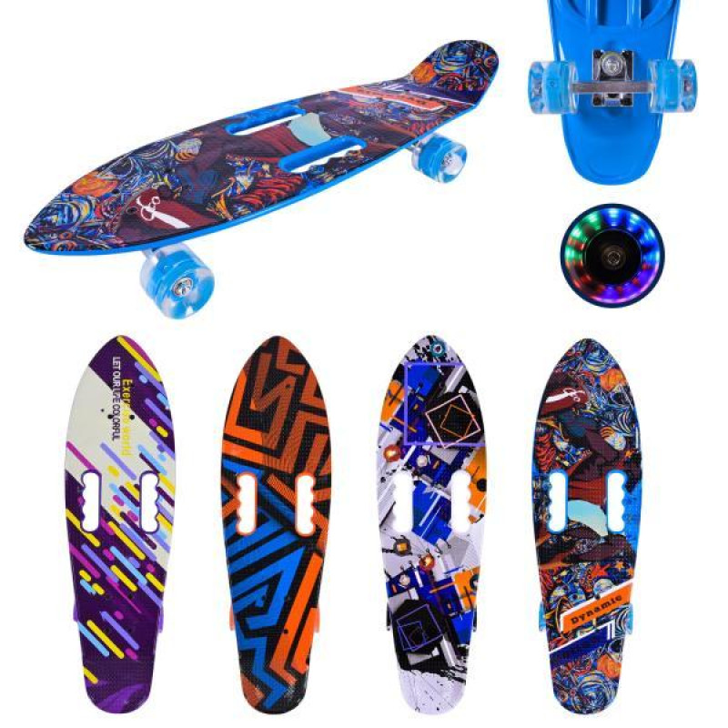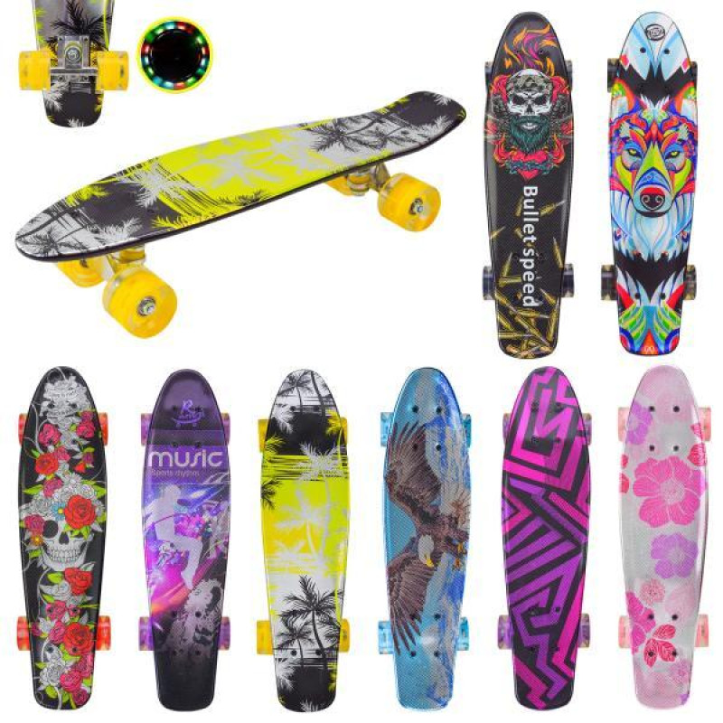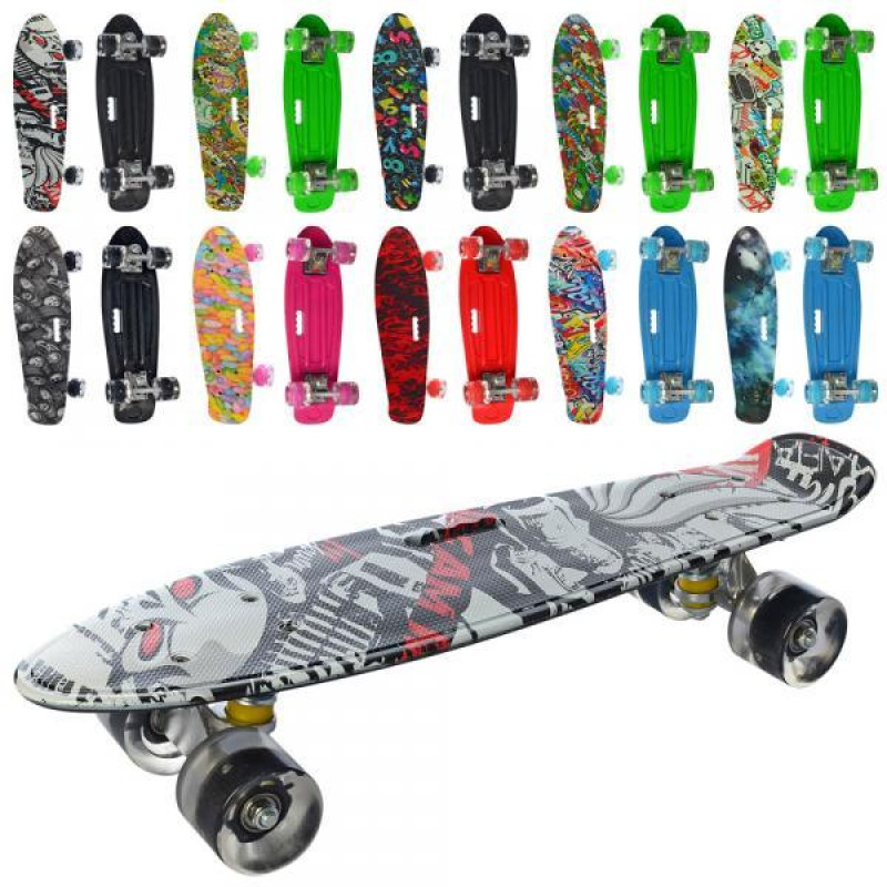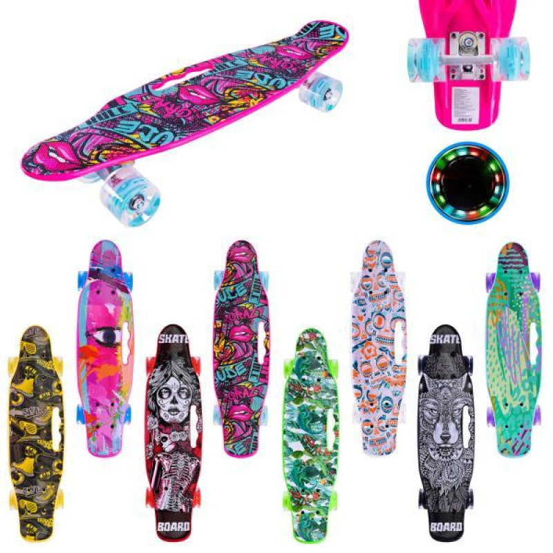 Скейт пенни 56*14,5см, колеса ПУ свет, рисунок, 10 видов, разобр, пак. 56*14,5см..