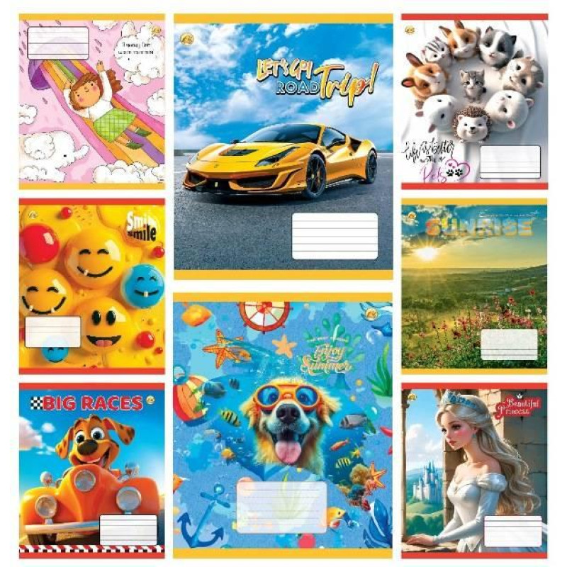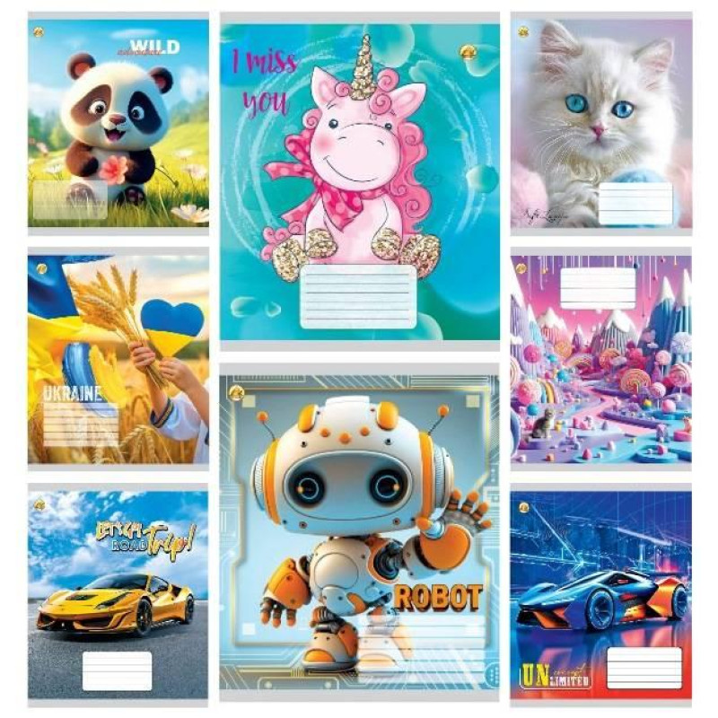 Тетрадь 12 л. косая, с доп. линией, цветная обложка Микс-8, ЦЕНА ЗА УП. 25ШТ, ТМ Тетрада, Украина