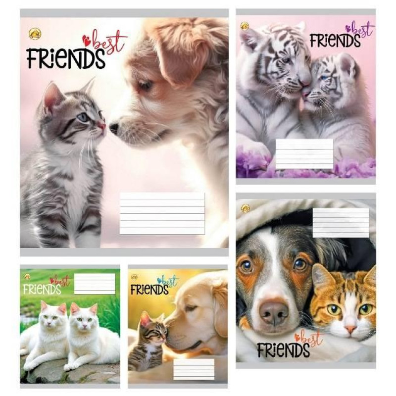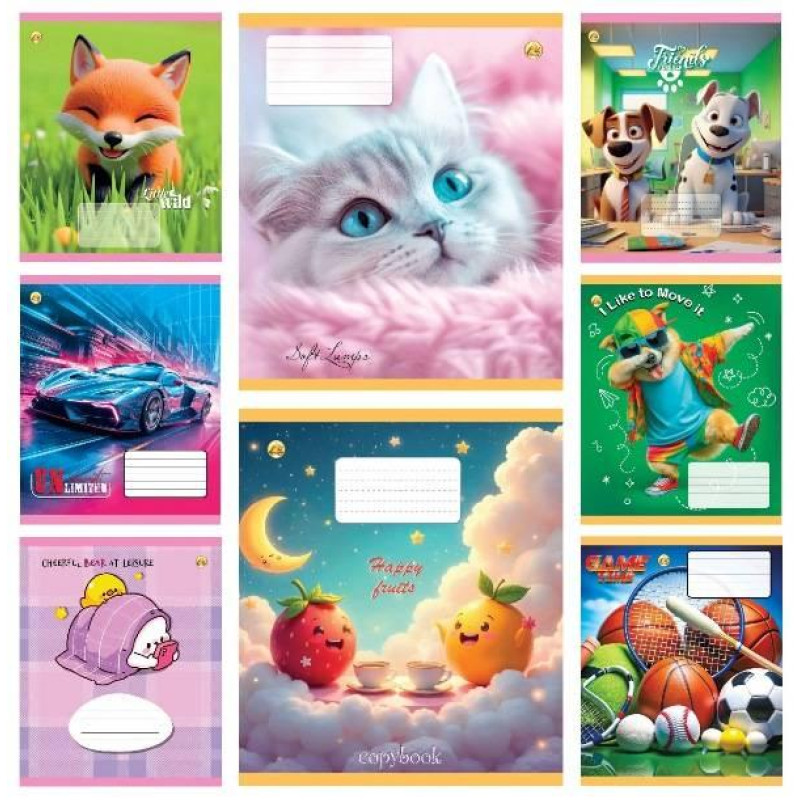 Тетрадь 12 л. линия цветная обложка Пушистые друзья, ЦЕНА ЗА УП. 25ШТ, ТМ Тетрада, Украина