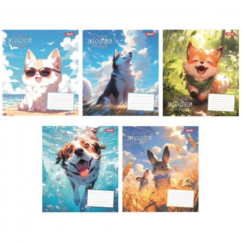 Школьная тетрадь формата А5 содержит 12 листов белоснежной офсетной бумаги с четкой линовкой и красными полями. Прочная картонная обложка изготовлена из качественного материала, надежно защищает тетрадь во время активного использования.Серия Dream Bigger отличается яркими обложками с милыми животным..