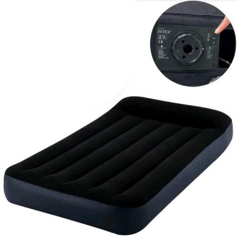 Матрас Велюр INTEX с подголовником 99х191х25см, со встроенным насосом 220 V, одноместный, максимальная нагрузка 136кг в кор. 33*36*17см