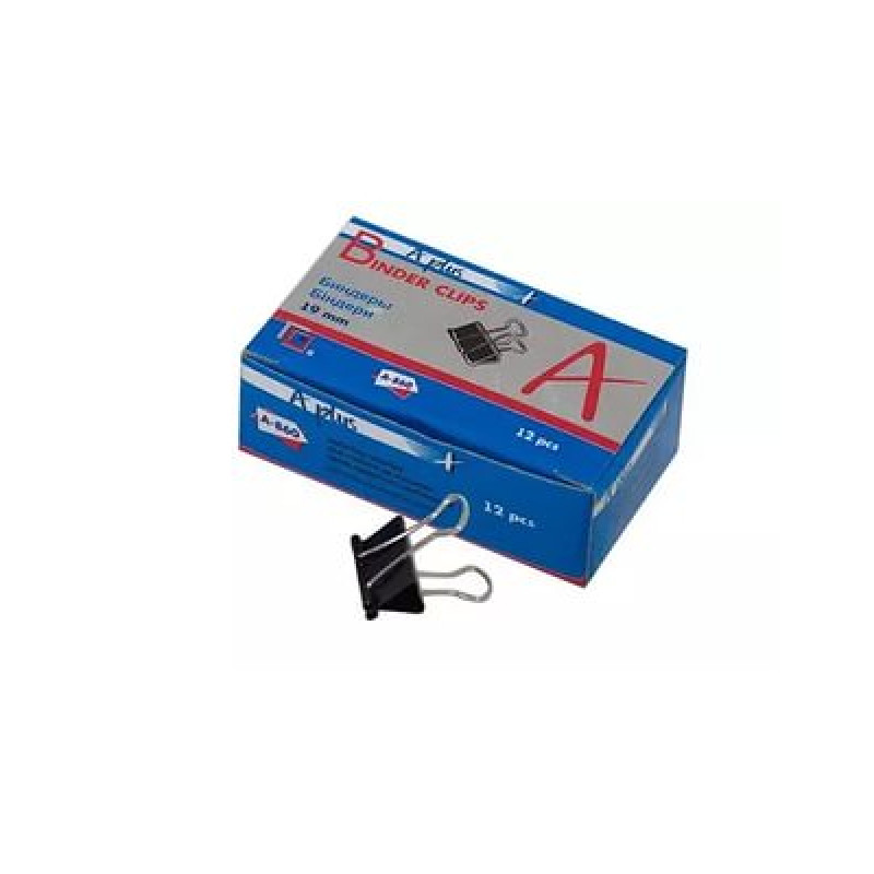 Биндер "A PLUS", металл., 19мм, черный, цена за уп. 12шт, 15*6.5*7см..