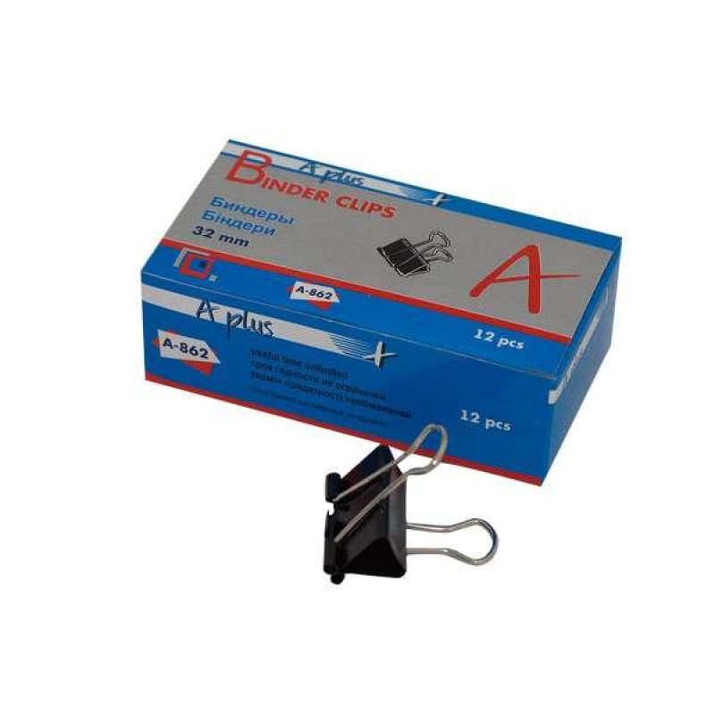 Биндер "A PLUS", метал., 32мм, черний, цена за уп. 12шт, 10*6*4см