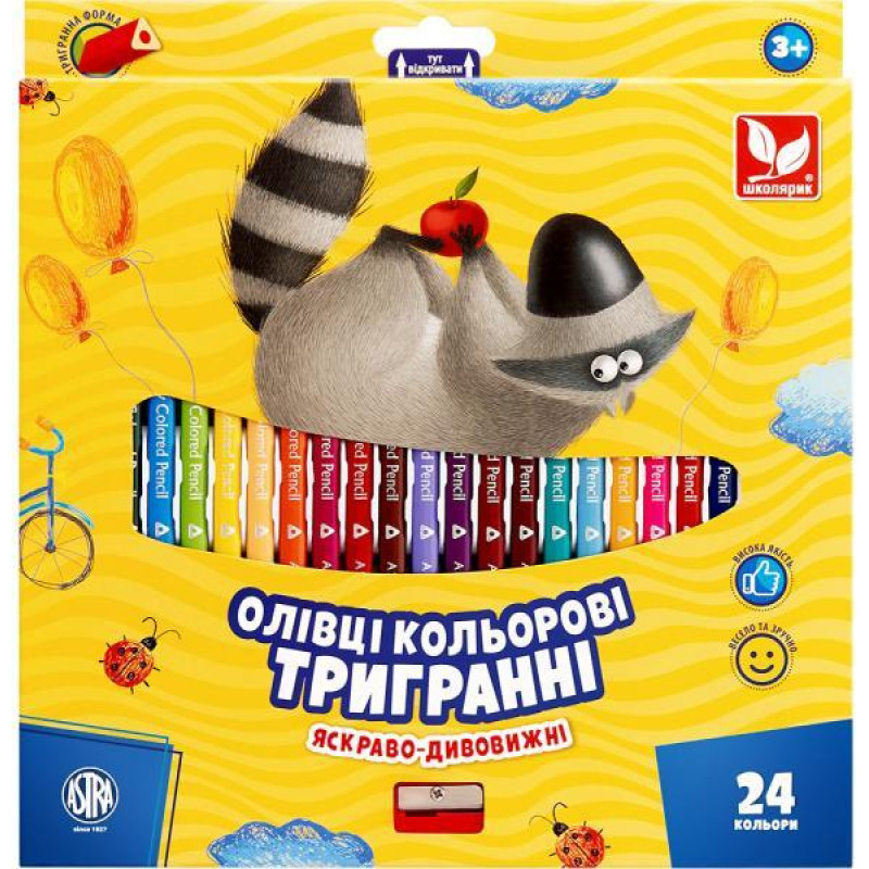 Карандаши цветные трехгранные + точилка - 24 цвета..
