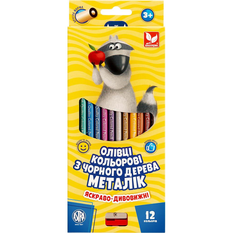 Карандаши цветные круглые Металлик + точилка 12 цветов..
