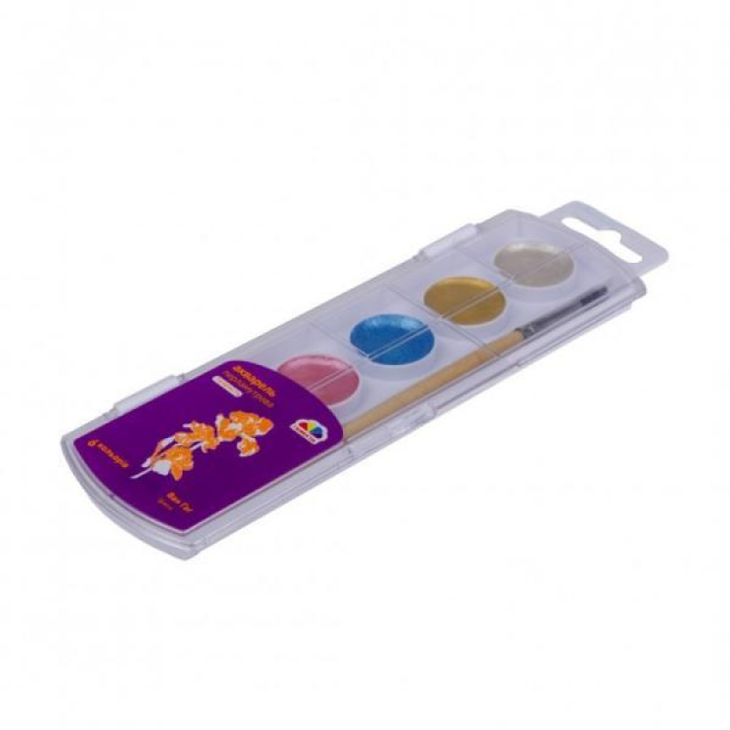Краски Акварель, 6 цветов, перламутровая с кисточкой "Творчество" 18*5,5см, Украина, ТМ Гамма..