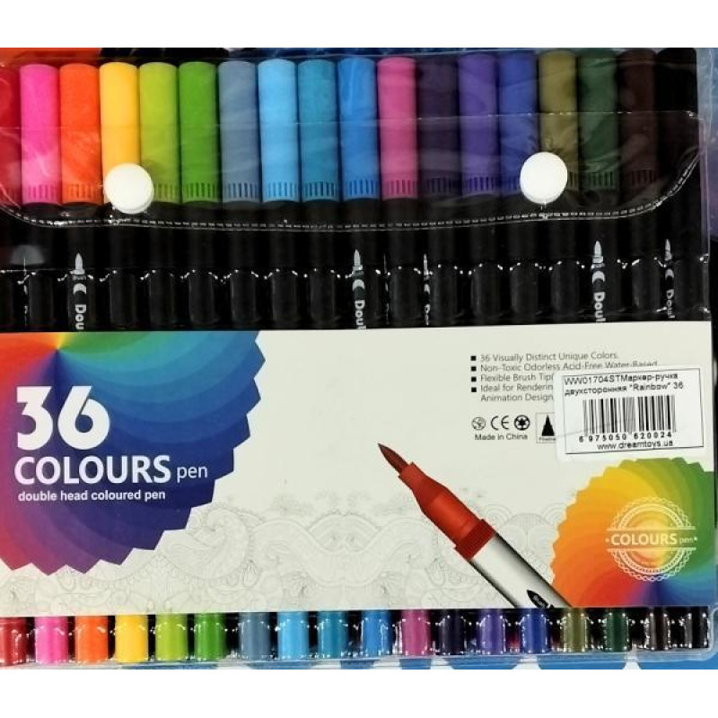 Маркер-ручка двухсторонняя "Rainbow" 36 цветов (40наб), арт: WW01704ST