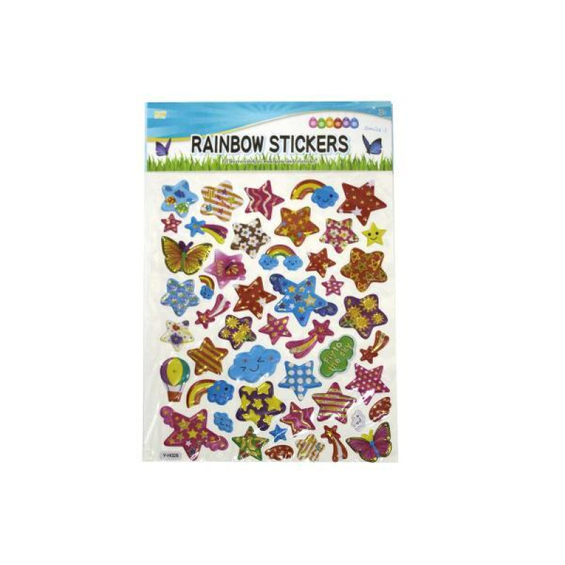 Наклейка рельефная, выпуклая с фольгой 10,5*35см Звездочки, облака 12шт/уп, арт: XQ-040..