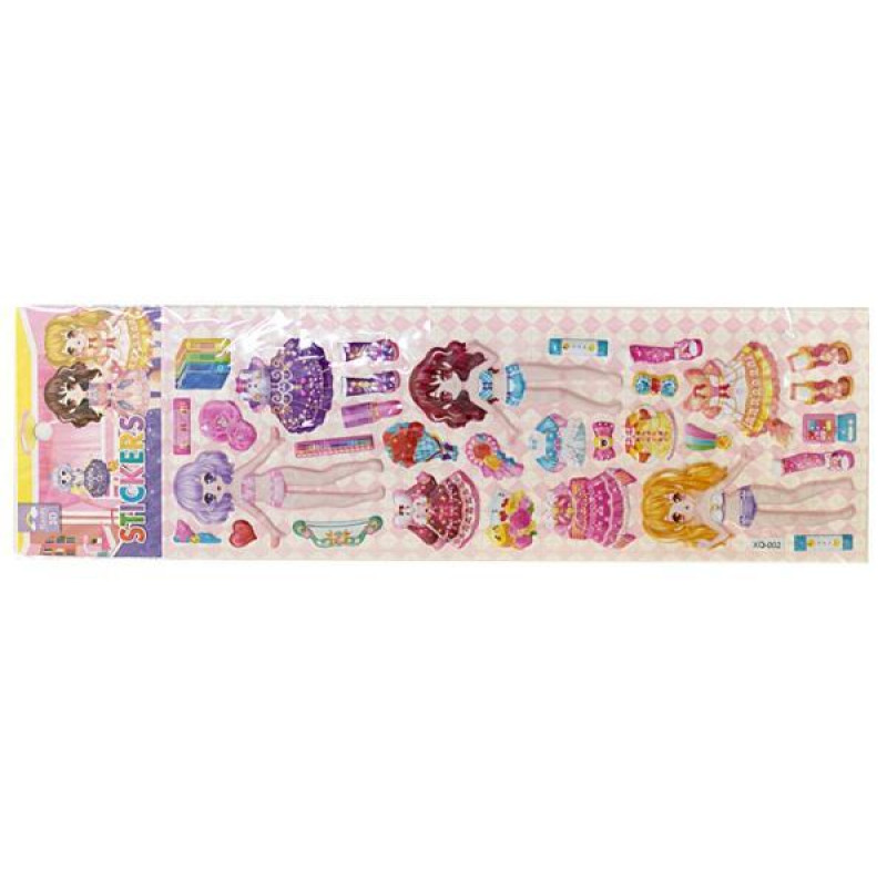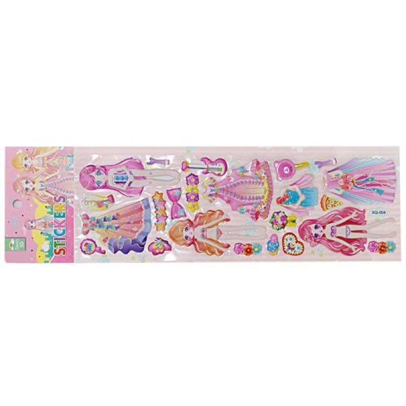 Наклейка рельефная, выпуклая с фольгой 10,5*35см Одень ляльки 12шт/уп, арт: XQ-003..