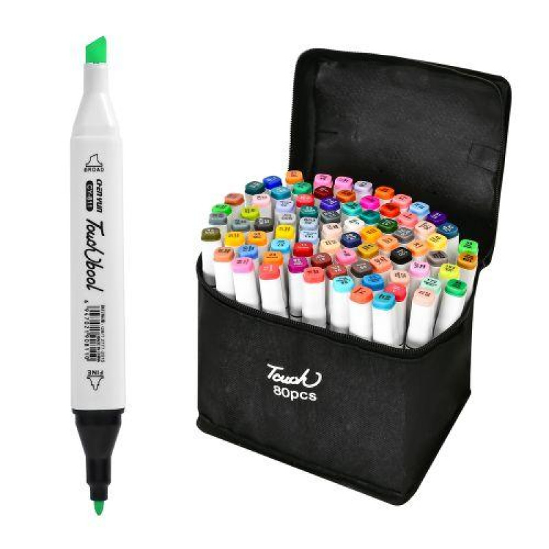 Скетч маркеры двухсторонний белый корпус 80 цветов, в сумке 17*17*15см(16наб), арт: WW00896