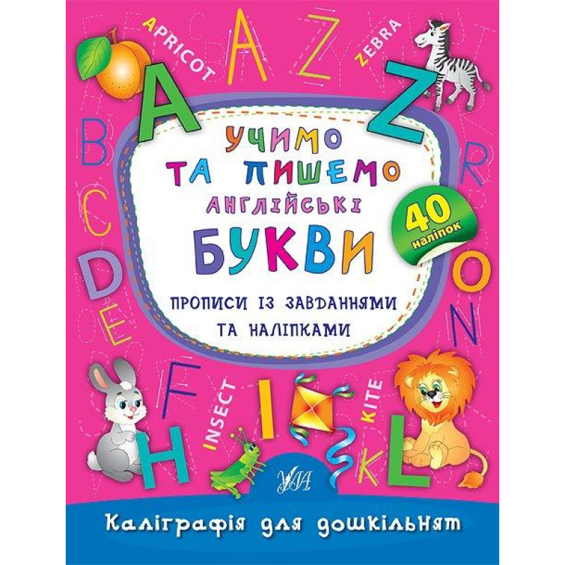 Книга Каліграфія для дошкільнят. Учимо та пишемо англійські букви. Прописи із завданнями та наліпкам 16,5*21,5см, Украина, ТМ УЛА..