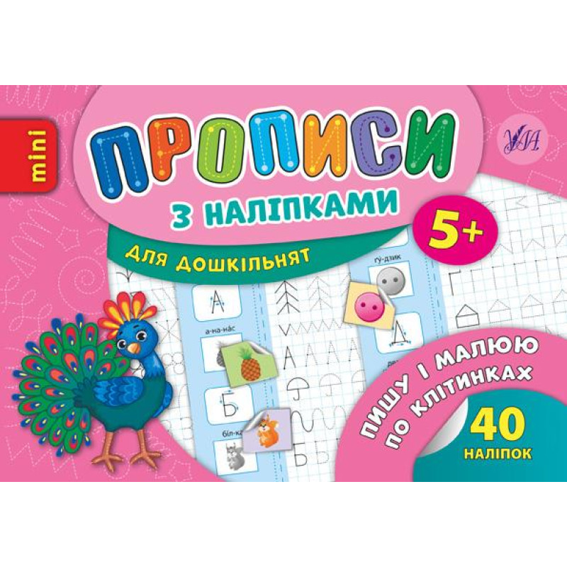 Книга "Прописи з наліпками. Пишу і малюю по клітинках", 21*14,5см, Украина, ТМ УЛА..