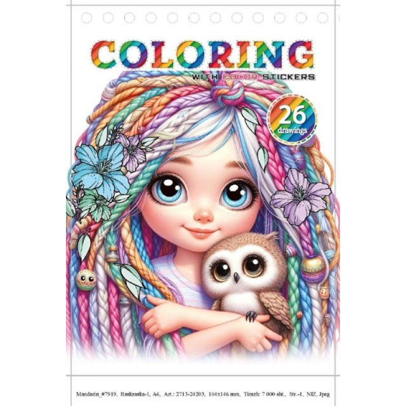 Раскраска с наклейками 10,5*14,8см,100г, 12 листов, печать..