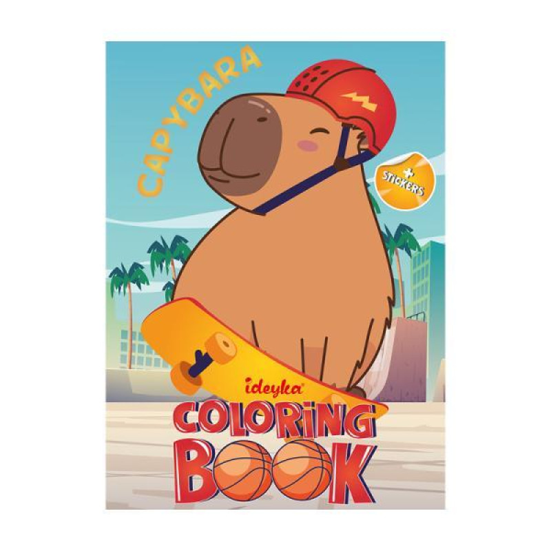 Раскраска со стикерами Капибара и спорт..