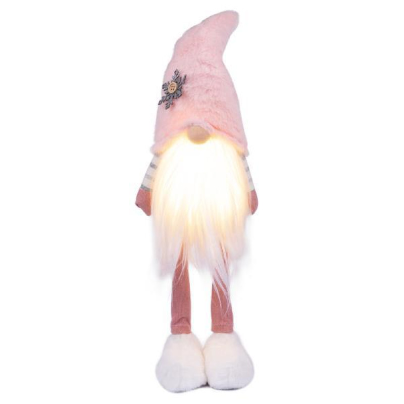 Новогодняя мягкая игрушка Novogod‘ko "Гном" в розовом колпаке, 46см, LED тело (974634)