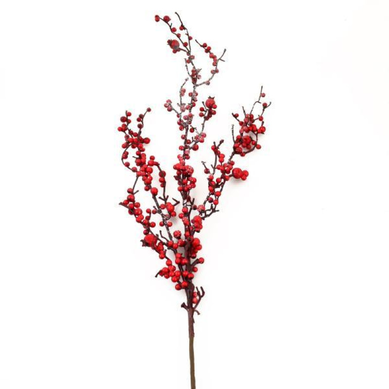 Декоративная веточка с красными ягодами станет прекрасным дополнением к большому многообразию праздничных композиций. Гармонично выглядит в сочетании с изделиями из дерева, ротанга, джута, хлопка. Такими веточками можно украсить елку или рождественские венки, которые традиционно занимают свое место ..