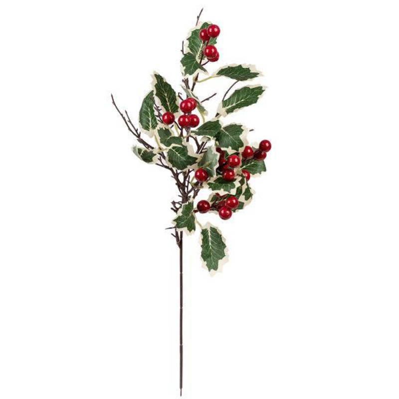 Красивая декоративная ветка с ягодами используется для создания праздничных композиций. Гармонично смотрится в сочетании с зеленой и заснеженной хвоей. Длина: 23 см. Материал: пенопласт, пластик, проволока с покрытием...