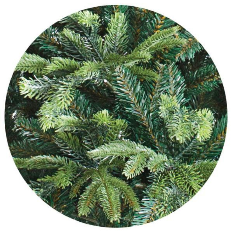 Искусственная ель с литыми ветками максимально подобна натуральному дереву. Все используемые материалы экологически чистые, имеют противопожарные свойства. Большим плюсом искусственной елки является её долговечность, а сборка конструкции не отнимет много времени. Красивое и пышное новогоднее дерево будет ежегодно наполнять дом радостью и благополучием в рождественский период. Материал: ПВХ пленка шириной 6 см; литые ветки; металл; проволока. Высота: 240 см. Диаметр нижнего ряда: 143 см. Ствол ели состоит из двух частей + верхушка. Подставка ели — это металлическая крестовина с болтами, закрепляющими ствол. Габариты: 2,40 м.