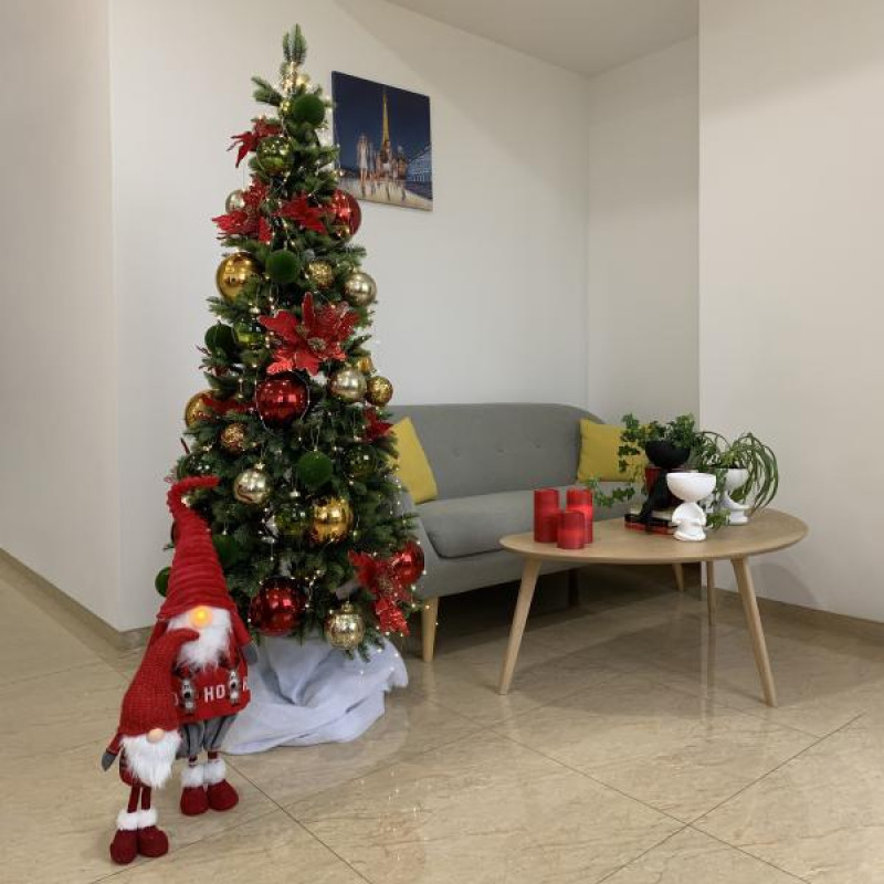 Искусственная ель с литыми ветками, заснеженная цветным снегом – незаменимый атрибут новогоднего интерьера. Все используемые материалы экологически чистые, имеют противопожарные свойства. Большим плюсом искусственной елки является её долговечность, а сборка конструкции не отнимет много времени. Красивое и пышное новогоднее дерево будет ежегодно наполнять дом радостью и благополучием в рождественский период. Материал: ПВХ пленка шириной 6 см; литые ветки; металл; проволока. Высота: 180 см. Диаметр нижнего ряда: 60 см. Ствол ели состоит из двух частей. Подставка ели — это металлическая крестовина с болтами, закрепляющими ствол. Цвет заснежки ели на выбор: розовый, зеленый, красный, салатовый и другие. Габариты: 1,8 м.