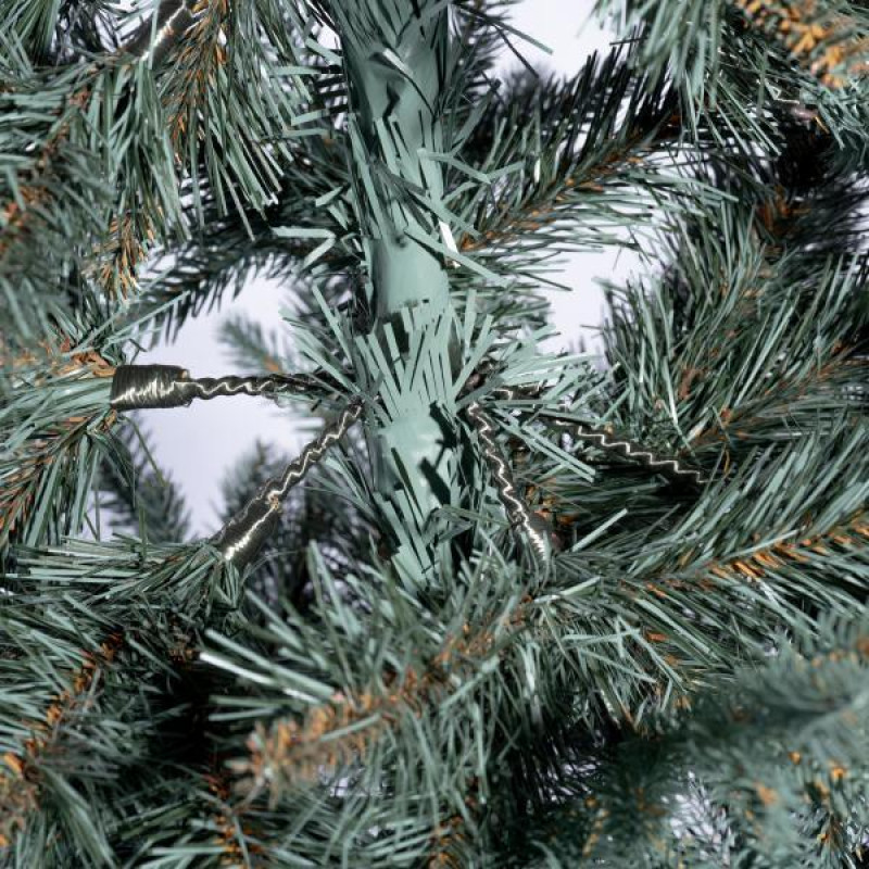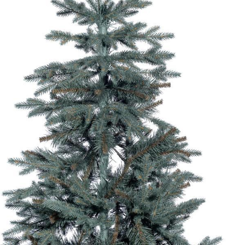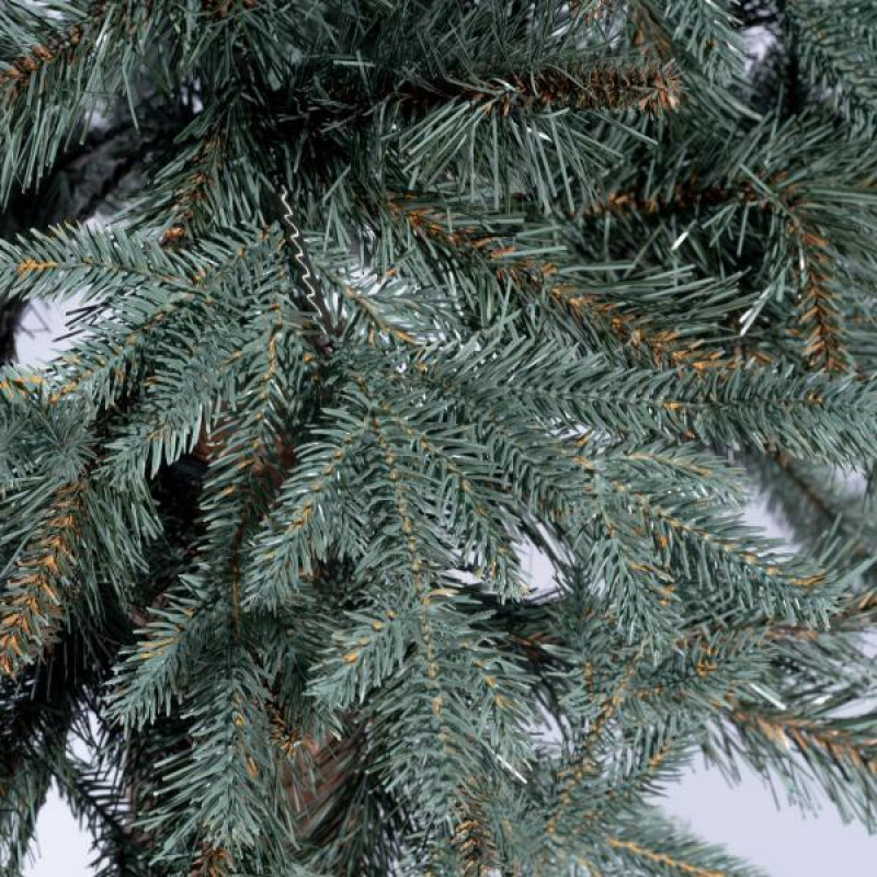 Искусственная ель с литыми ветками на высоком деревянном стволе очень похожа на натуральное дерево, растущее в живой природе. Все используемые материалы экологически чистые, имеют противопожарные свойства. Большим плюсом искусственной елки является её долговечность, а сборка конструкции не отнимет много времени. Красивое и пышное новогоднее дерево будет ежегодно наполнять дом радостью и благополучием в рождественский период. Материал: ПВХ пленка шириной 8,5 см; литые ветки; металл; проволока. Высота: 180 см. Диаметр нижнего ряда: 86 см. Ствол ели состоит из двух частей.