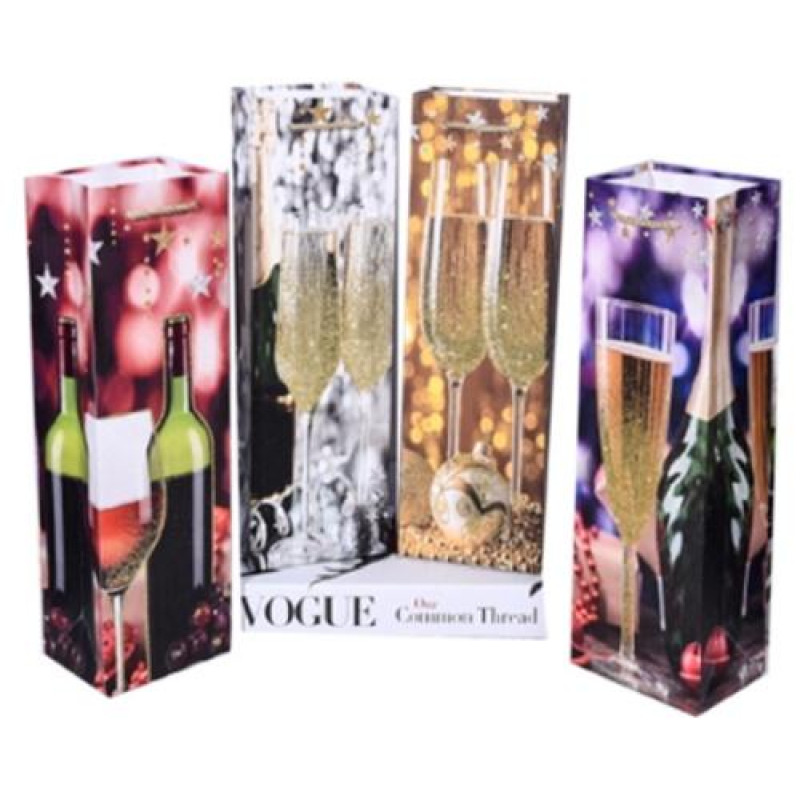 Пакет новогодний бумажный под бутылку "Champagne's splash" 12*9*35см, ЦЕНА ЗА УП. 12ШТ
