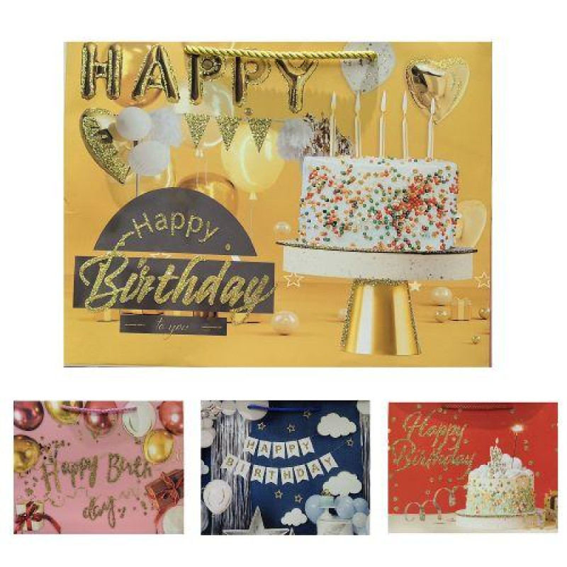 Пакет подарочный бумажный M "Happy birthday" 26*32*11см, ЦЕНА ЗА УП. 12ШТ , арт: R32952-M