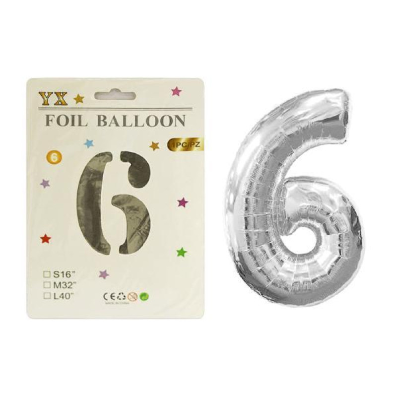 Шарик цифра 75см, индивидуальной упаковке, серебро, в пак. 20*14см